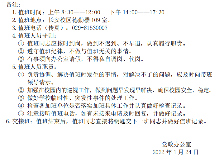 2022年寒假学校总值班安排表(1月25日—3月4日)