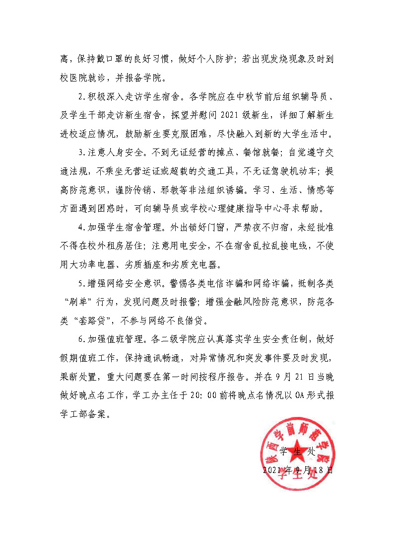 上一条:关于做好2021年中秋假期学生安全教育管理工作的通知