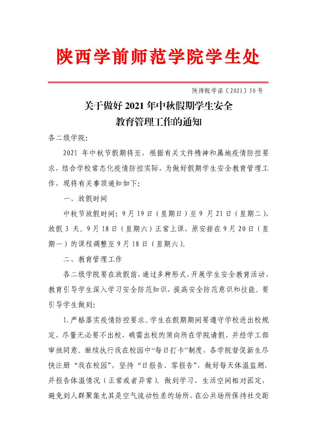 下一条:关于做好2021年中秋假期学生安全教育管理工作的通知
