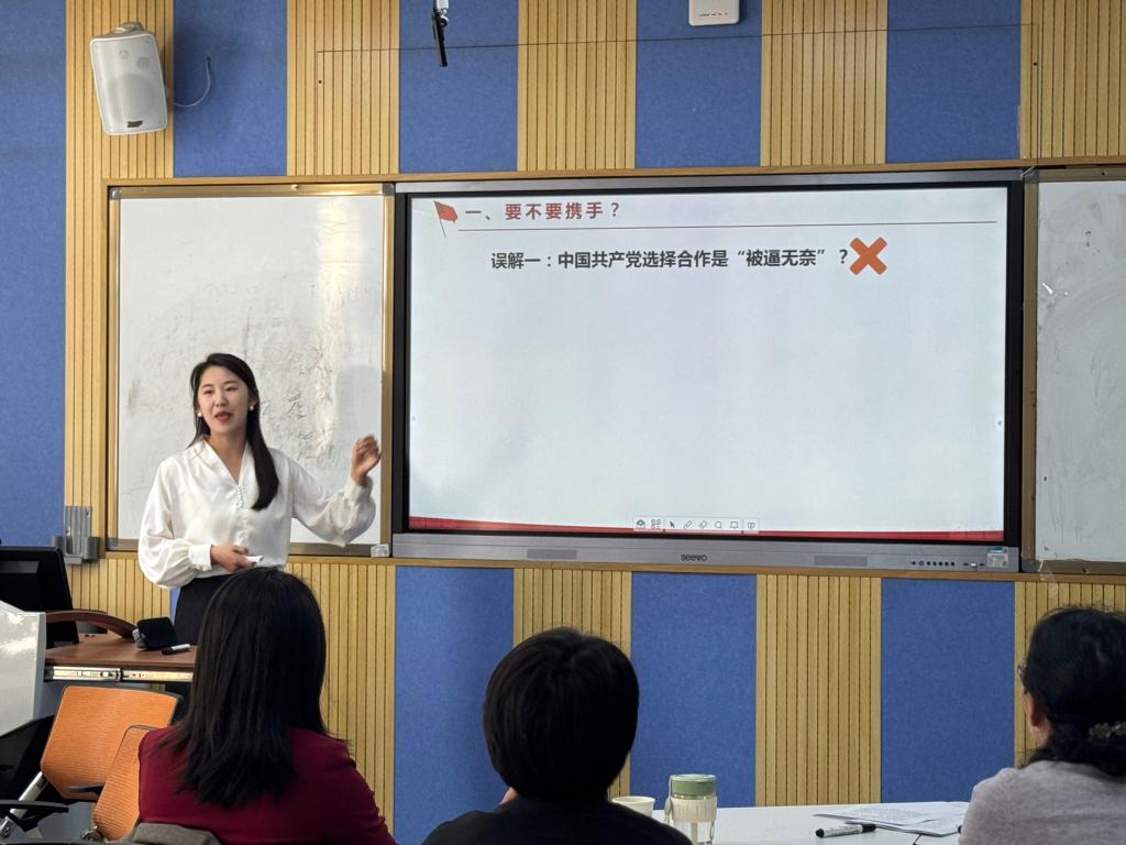 为深入学习贯彻习近平总书记关于学校思政课建设重要指示批示精神和在学校思想政治理论课教师座谈会上的重要讲话精神,认真贯彻落实新时代学校思政课建设推进会及全省学校思政课建设座谈会精神,全面落实立德树人根本任务。10月24日下午,马克思主义学院邀请西安建筑科技大学宋玉路老师、西安美术学院刘瑶老师来我院进行示范课展示。马克思主义学院青年教师,即将参加2024年省级“思政大练兵”备赛的老师参加了这次活动。这次活动由马克思主义学院院长纪明教授主持。