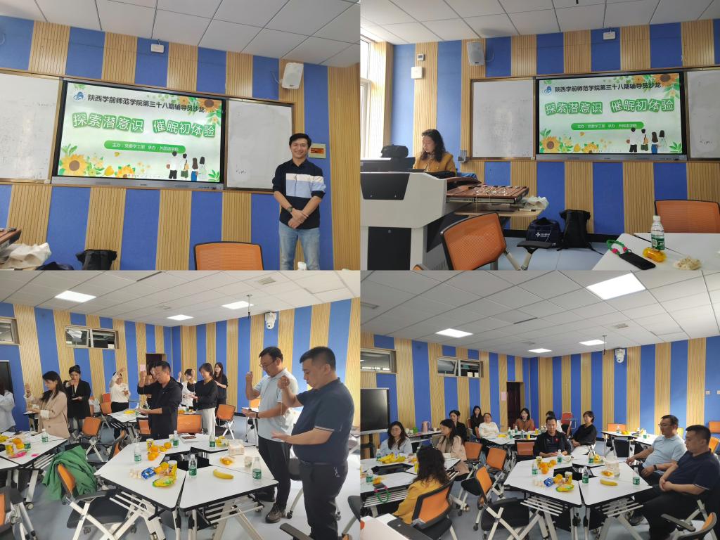 本期沙龙邀请了陕西海尔森心理培训学校贾阳老师作主题讲座。贾阳老师从专注、信任、想象力方面讲述了催眠的科学依据、催眠减压的各种作用,并指导老师们开展心理游戏,在游戏中充分感受身体的变化。通过两个时段的催眠体验带领辅导员老师达到了身心平和、宁静、舒畅的状态。催眠体验结束后,大家纷纷表达了自己的感受,彼此分享了工作中的经验和困惑。最后,贾阳老师与大家一同探讨心理健康活动的意义,并对大家提出的问题进行了一一解答。与会辅导员纷纷表示受益匪浅。