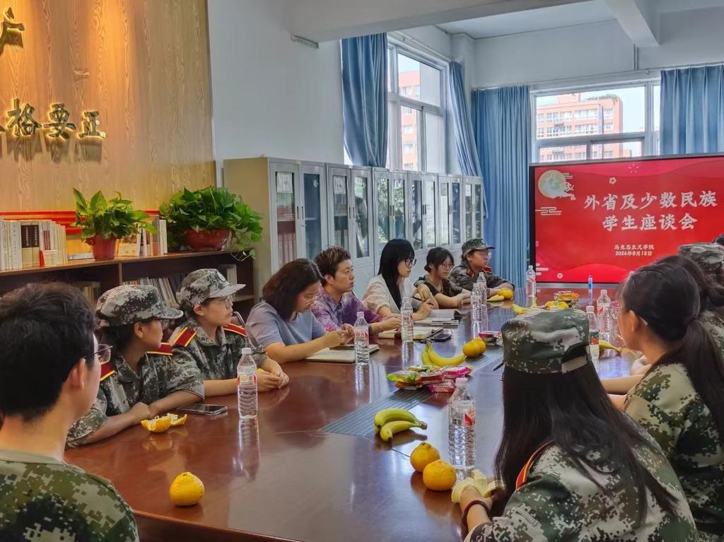 9月12日下午,马克思主义学院2024级新生少数民族及外省籍学生座谈会在博文楼C202学院会议室召开。学院党委书记高萍、副书记白艳、辅导员陈茜以及全体少数民族学生、外省籍学生参加座谈会。座谈会由2024级新生辅导员主持。