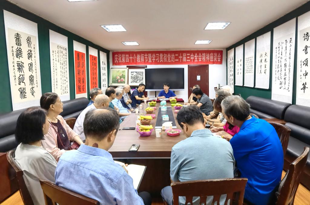 9月10日上午,离退休工作处在雁塔校区老年会议室召开庆祝第四十个教师节暨学习贯彻党的二十届三中全会精神座谈会。学校老专家、老教授、老教师、老干部代表等20余位离退休老同志参加了座谈会。座谈会由离退休工作处处长赵新峰主持。