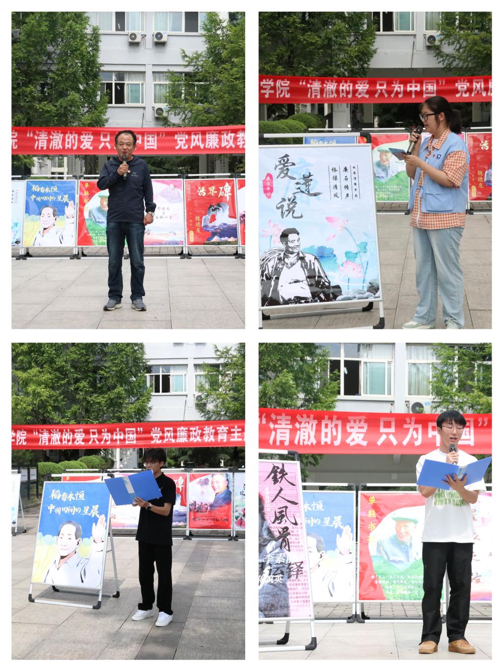 经过层层筛选,活动组委会最终评选出11张海报进行展示,海报精心设计,展现了一批建党百年以来为党的事业发展做出杰出贡献的优秀共产党员事迹,如:人民公仆焦裕䘵同志、草鞋书记杨善洲同志、两弹元勋邓稼先同志、“活界碑”魏德友同志、最美奋斗者黄文秀同志、感动中国人物钱七虎同志、杂交水稻之父袁隆平同志,从廉政的角度出发,讲述发生在他们身上真实、别样的廉政故事,用故事引导师生学廉政、懂廉政、树廉政之风,强化师生党风廉政的意识,做到知敬畏、守底线。