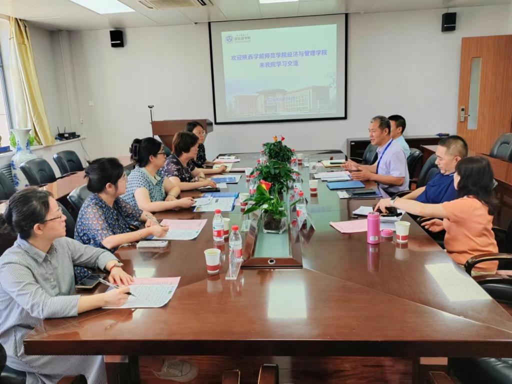 6月27日,调研组到访陕西师范大学国际商学院,与国际商学院雷宏振院长、尹海员副院长、邱远航书记和任海云教授等进行了深入交流。陕师大国际商学院在学科建设、专业设置、课程设置、双创教育、竞赛开展等方面的先进经验,为调研组修订人才培养方案提供了有益的借鉴。双方还就校企合作、实践教学、就业指导等内容进行了深入沟通。