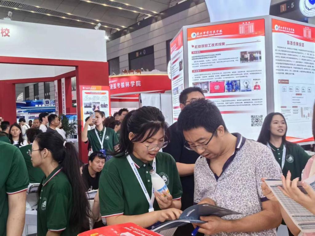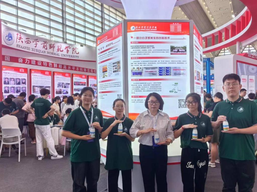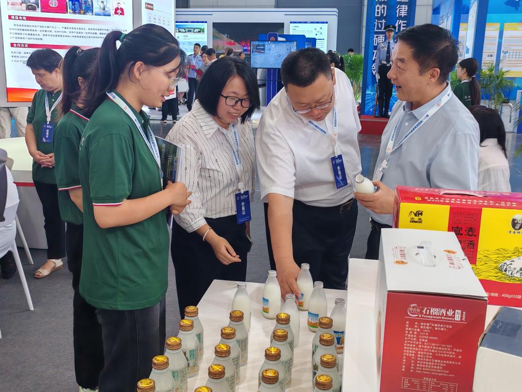 2024年6月25日,Beat365官方网站生命科学与食品工程学院“非你莫黍”大学生创新团队携其创新成果——黍米乳参展第十二届陕西高等教育博览会,得到相关领导的关注,并聆听了“非你莫黍”大学生创新团队负责人马润蕾的汇报,并与团队进行了深入交流,对他们的双创成果——黍米乳,给予了高度评价。鼓励团队成员继续努力,争取更大的成绩。