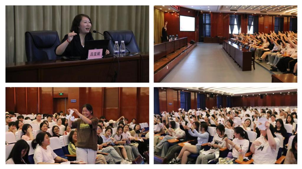 吕老师的讲座中渗透着易懂理论知识,也提供了易于操作的解压方法。讲座在轻松幽默的氛围中,在奇妙的互动游戏中,循序渐进,在听课大学生中产生了良好的效果。
