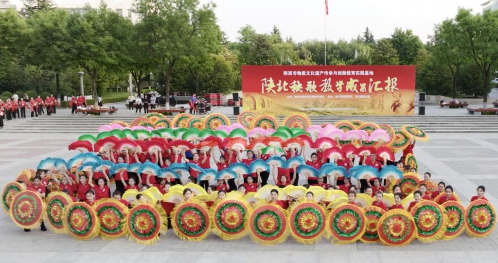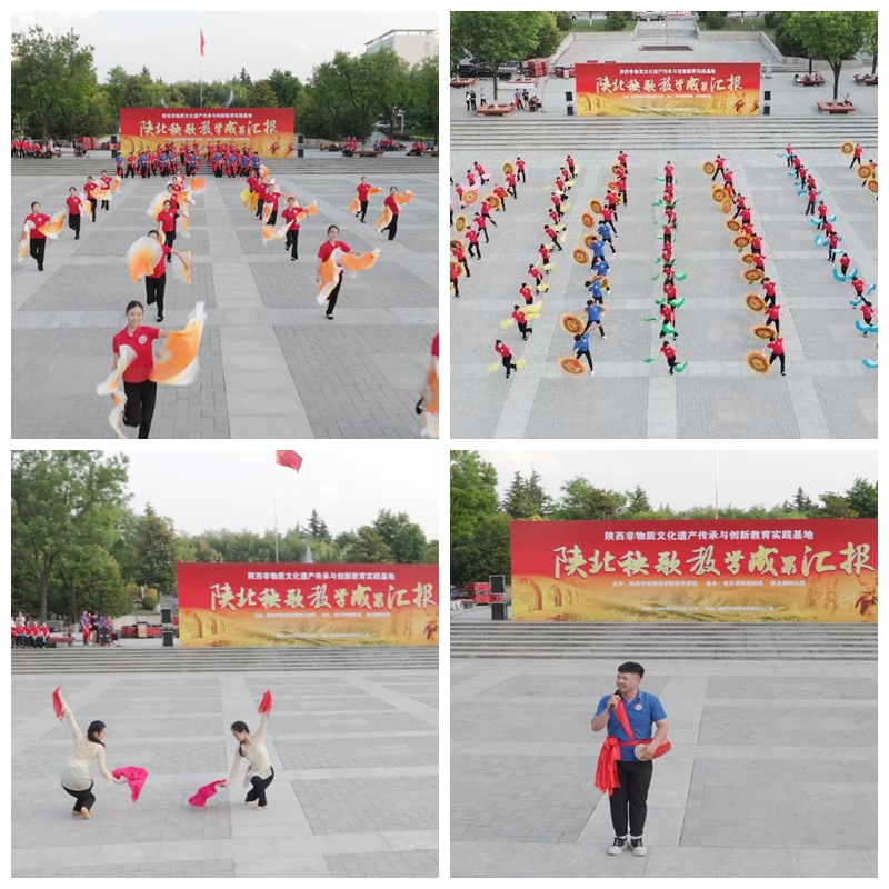 为发挥Beat365陕北腰鼓非物质文化遗产传承教育实践基地的示范引领作用,在纪念毛泽东《在延安文艺座谈会上的讲话》发表82周年之际,5月21日下午音乐学院在学校中心广场举办陕北秧歌教学成果汇报演出,致敬民间艺术、致敬非遗文化。
