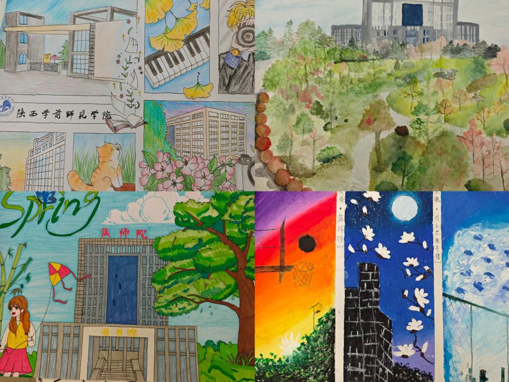 大赛征集的作品中,校园美景遍布,刚盛开的玉兰花、翠色欲滴的风景、夕阳下的教学楼、自律的晨跑者、清扫落叶的保洁员、图书馆中奋斗的身影、最美的青春志愿者……作品以细腻的勾勒、完整的构图、明亮的色彩表达出学生对母校的热爱、对春日的憧憬、对梦想的追逐。做为师院有心人,他们用画笔在陕师院和“春天”完美的约会!