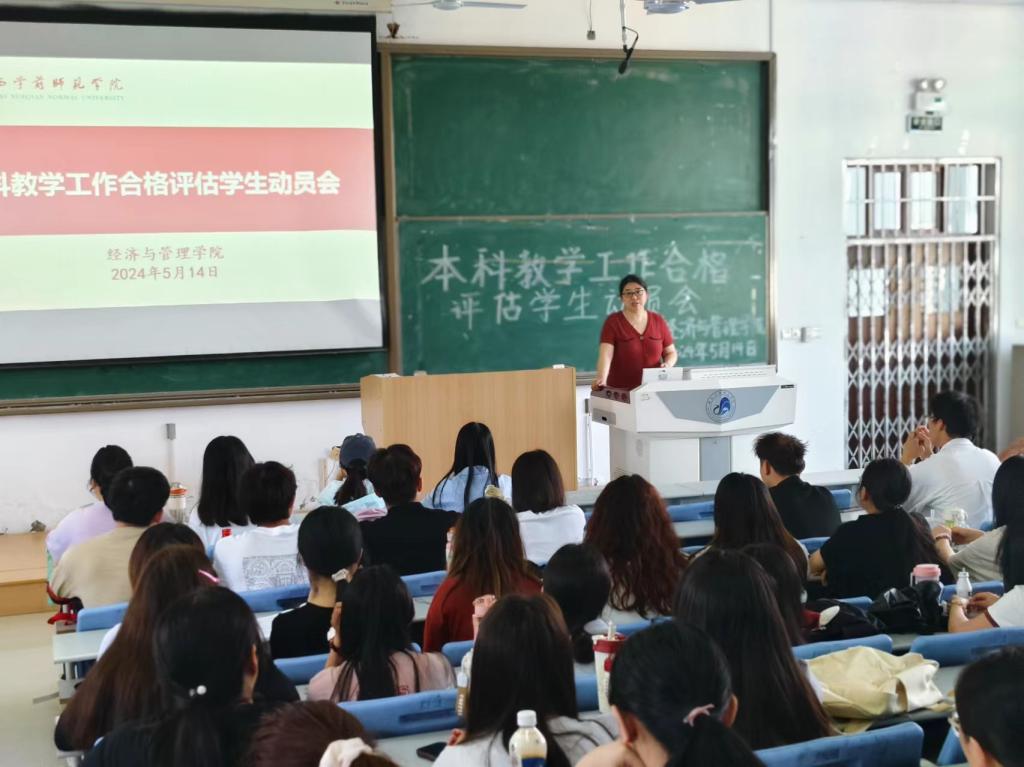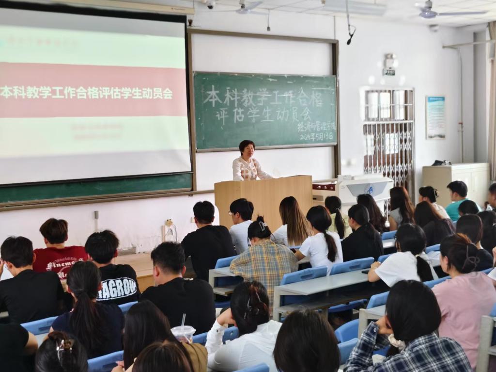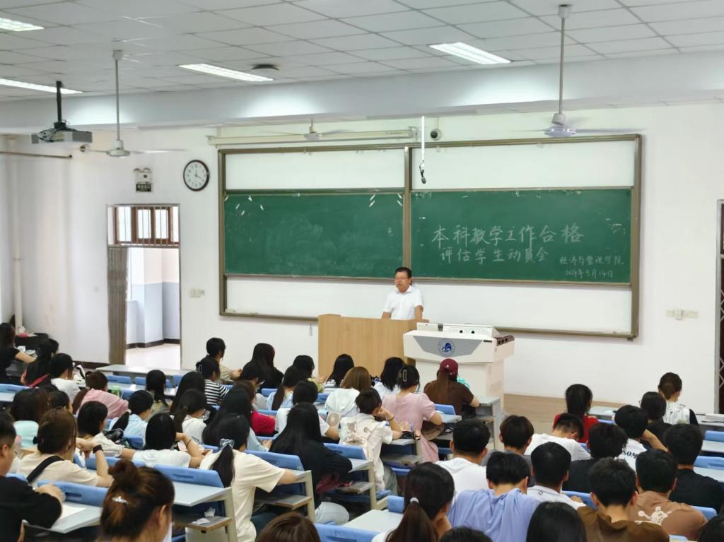 为全力迎接教育部对Beat365本科教学工作合格评估,切实做到以评促建、以评促改、以评促管、评建结合,5月13日-14日,经济与管理学院召开本科教学工作合格评估学生动员会。学院领导班子、教师代表、辅导员、各年级学生参加动员会。
