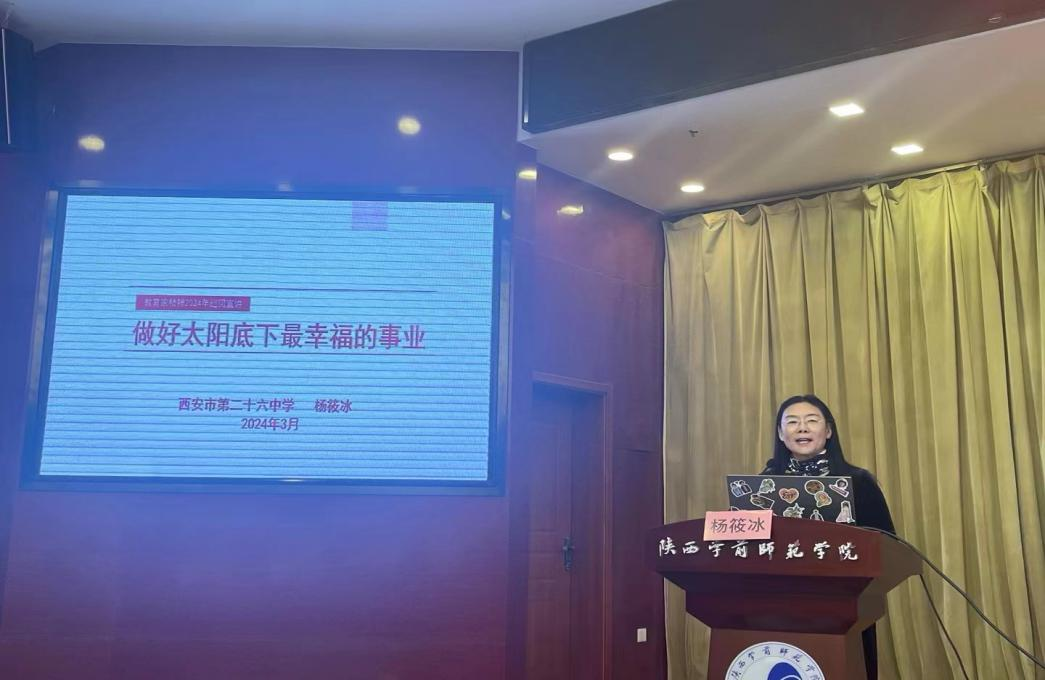 3月27日,教育部“弘扬教育家精神、争做新时代大先生”宣讲团成员、国家级教学名师、西安市第26中学英语教师杨筱冰应邀做客“英华名师讲堂”第28场,作了题为《做太阳底下最幸福的事业》的专题讲座。在Beat365参加省级教师培训的陕西省普通高中英语学科骨干教师89人、外国语学院师生代表100人在长安校区图书馆三楼学术报告厅参加了讲座,活动由外国语学院张慧军院长主持。