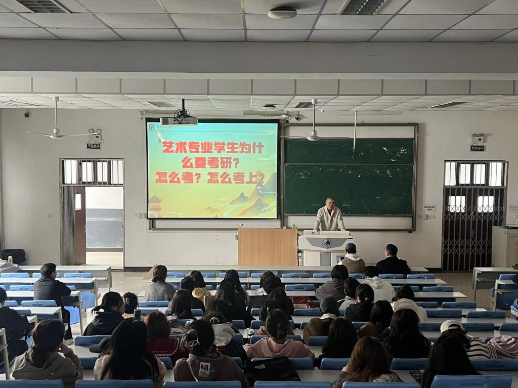 为营造积极向上的学风,提高学生的考研热情,明确考研目标,树立考研自信心,促进考研学生应试技巧的提升,美术学院分别于3月26日、27日下午在1教c2教室开展了2025届毕业生考研动员大会暨考研指导讲座。会议由美术学院副院长王希主持,邀请了黄土画派美术博物馆执行馆长张子麟、考研专家任蹦蹦老师做考研规划和应试技巧报告。2024届备考研究生复试毕业生及2025届有意向备考研究生考试的同学参加本次讲座。