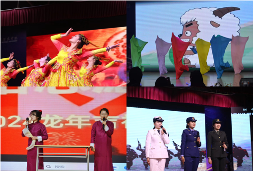 本场晚会,同学们以精湛的表演展现了多样的才艺,有歌曲串烧、舞蹈表演、小品相声,精彩的节目轮番上演:舞蹈《飞向春天》拉开晚会的序幕,《五彩被套disco》动感实足、相声《献给志愿者的诗》表达对抗疫志愿者的致敬、哑剧《青春纪念手册》、语言类节目《上学那些事》《监考老师》《我爱学习》、影子剧《青春不散场》等将大学生的校园生活表现得淋漓尽致,语言诙谐幽默,寓教于乐;舞蹈串烧和《红山果》驱散了冬日的凛冽,增添了一抹阳光;歌曲串烧《开盲盒》《乘风歌唱》《恋爱ing》等欢快动感,活力四射,带动现场观众一起嗨 ;《T台礼模秀》更是惊艳全场,一场视觉与艺术的盛宴。舞台上,每个节目都让观众沉浸其中,情不自禁地为他们热烈鼓掌。更有幸运抽奖环节,将整个晚会推向高潮,幸运儿们载着礼物喜笑颜开,让晚会更加喜庆热烈。