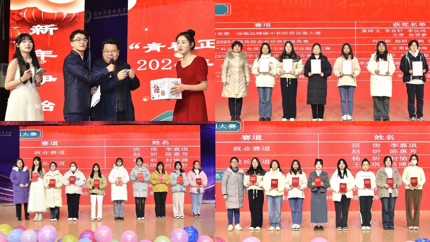 整场晚会在热烈欢快的氛围中拉开了帷幕,动感的舞蹈,深情的演唱,动人的讲述都充分展示着青年学子的无限创意与激情。《光年之外》《我爱学习》《次仁拉姆》《我的新衣》《青春中国》等十余个节目接连上演,赢得了现场观众的阵阵欢呼与掌声。我院梅林晨老师精心带来的《剑舞》,让在场师生感受到了传统武术与魔术融合表演的特殊魅力。徐晗老师与学生倾情合唱《终于等到你》,并为全院师生送上了真挚的新年祝福。在晚会进行的过程中,学院还对在2023年学科专业竞赛、职业规划大赛、书香校园阅读、学习成果展示等学风建设系列活动中表现突出的学生代表进行了集体表彰,鼓励更多经管学子在新的一年中与榜样同行,向未来奋进。