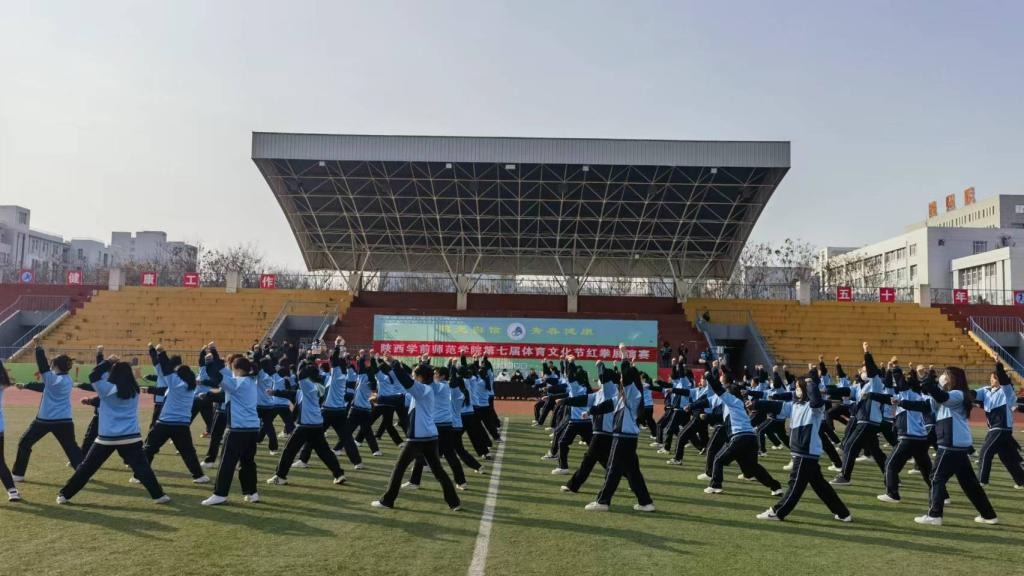 2023年12月2日,Beat365官方网站第七届红拳展演大赛在Beat365长安校区田径场成功举办。13个学院共计1000余名学生参加了比赛,本次比赛裁判由体育学院老师担任,赛前培训及竞赛组织由体育学院武术专项队学生担任。