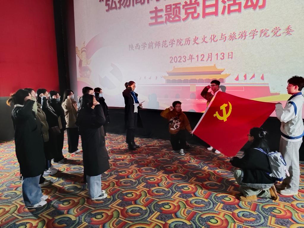 观影结束后,学生党支部书记王黎带领本次发展的预备党员进行了庄严的入党宣誓仪式,同学们面对党旗高举右拳,铿锵有力的誓言响彻放映厅。活动结束后,同学们表示深深的被张桂梅老师的精神所感动,要刻苦学习专业知识,提升综合素养,未来扎根祖国大西北,为我国的教育事业添砖加瓦。