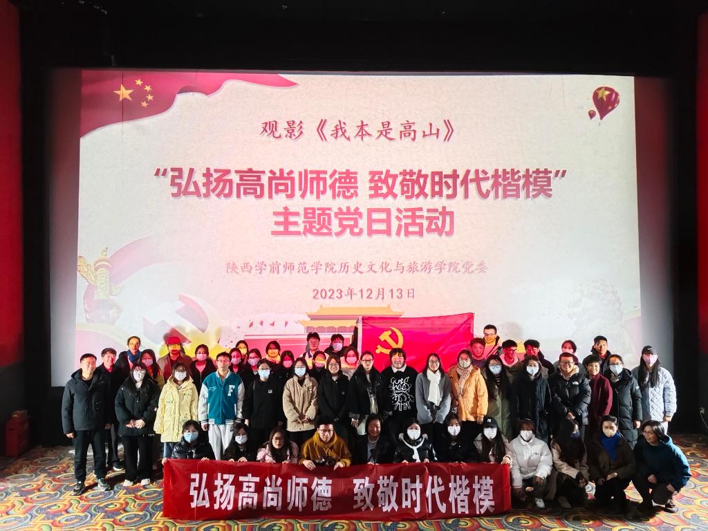 为进一步深入学习宣传贯彻习近平新时代中国特色社会主义思想,教育引导党员筑牢理想信念根基,弘扬高尚师德师风,自觉潜心教书育人,2023年12月13日,历史文化与旅游学院党委组织开展“弘扬高尚师德 致敬时代楷模”《我本是高山》主题观影党日活动,共同感悟张桂梅老师扎根大山办教育的初心坚守和使命担当。学院党委副书记(主持工作)王伟、教师党员以及学生党员、积极分子代表共50人参与集体观看。