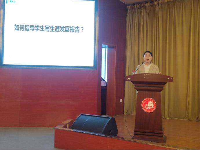 讲座中,张蕾老师从全国大学生职业规划大赛的方案解读、平台介绍、大赛准备三个方面,围绕“成长赛道”、“就业赛道”教师如何指导学生写好生涯发展报告、选择合适就业赛道等问题做了详细的剖析。并结合学生实际具体案例指导和帮助参会人员筹备参赛。