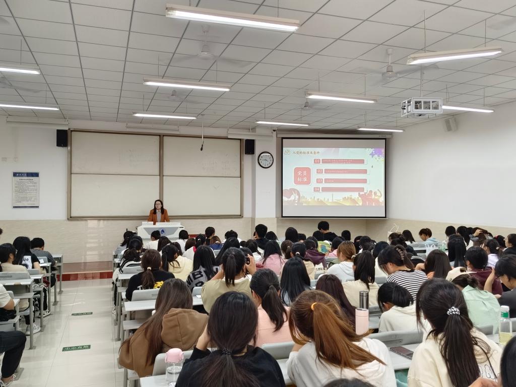 学生党支部书记何静详细解读了在校大学生入党的意义和入党流程规范。她从入党的思想准备、入党条件、入党程序和入党文书的写作、培养过程等方面做了详细指导。