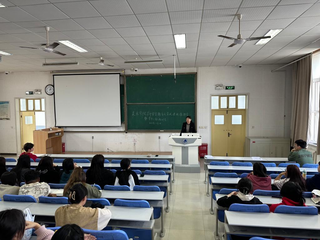 首先,美术学院党委副书记于跃对学院2023——2024学年的学风建设工作进行整体安排部署,详细解读了《美术学院学风建设实施方案》。她指出,学院将通过教育、管理、服务相结合的手段,形成美术学院学风建设长效机制,助力学院高质量发展。并强调安全无小事,同学们提高自我防范意识,重视校园安全教育。倡导学生党员、学生干部在日常学习生活中应充分起到模范带头作用。
