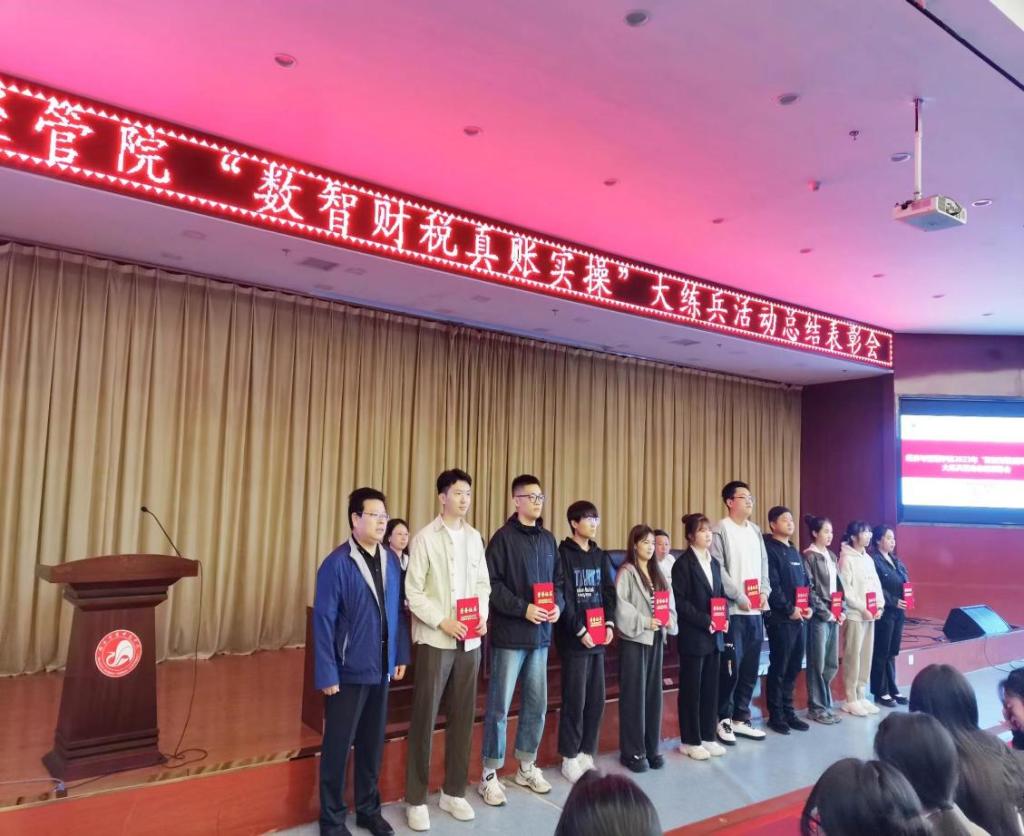 为了进一步提升2024届财务管理专业学生生产实习质量和就业能力,经济与管理学院邀请广东正誉集团和陕西天地财务集团开展为期一个月的学生“数智财税真账实操”大练兵活动。本着在总结中继续提升的目的,学院于2023年10月8日上午9:30在长安校区图书馆三楼报告厅对本次大练兵活动进行总结表彰,学院领导、广东正誉集团企业代表、陕西天地财务集团企业代表、学院教师代表与毕业班辅导员、2024届财务管理专业全体同学参加了此次表彰大会。会议由学院党委副书记陈璐主持。