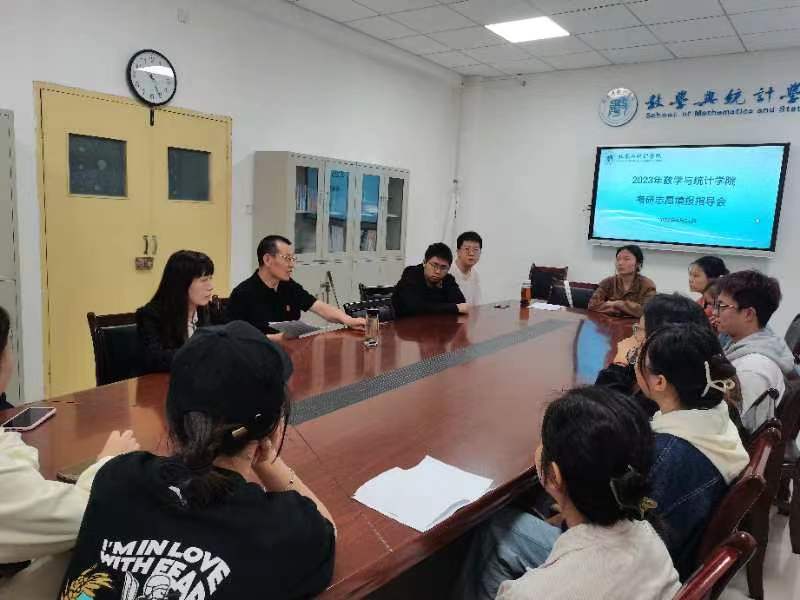 为进一步提高2024届毕业生考研报考的针对性,增强考研信心,9月21日,数学与统计学院在积学楼D319会议室召开2023年考研志愿报考指导会。数统院院长李宏飞、学院党委副书记张晔及2024届有考研意向的近50名毕业班学生参加了会议。会议由学院党委副书记张晔主持。