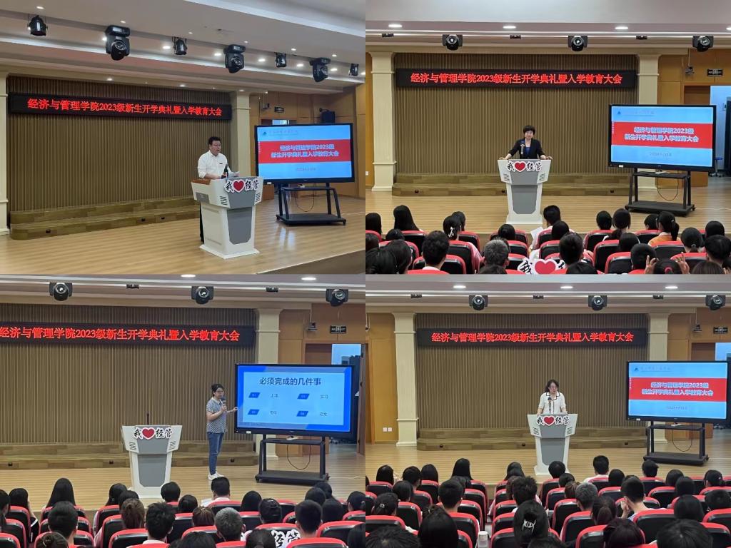 副院长刘家瑛结合日常上课、课程考核、生产实习、毕业论文等重点学习任务,系统讲解了学校教学管理制度、学生学籍管理制度等内容,为新生顺利完成大学学业提出了宝贵建议。学院院长崔洁代表全院师生热烈欢迎2023级全体新生加入经济与管理学院这个大家庭,希冀同学们在未来的四年中潜心向学、收获成长、不负时代、不负韶华,努力在知行合一中增智慧、长才干,成长为堪当复兴重任的时代新人。在大会最后,学院党委书记张建辉也祝愿新一代经管青年披荆斩棘,在困难与挑战的磨练中超越自我,在责任与担当的实践中不断成长。