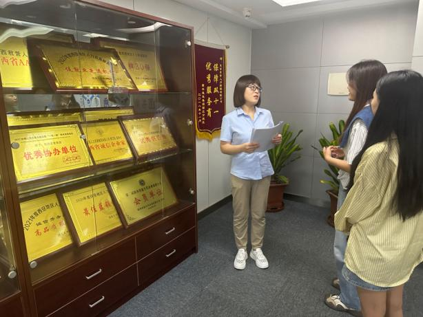 上午9:30分,陕西君营人力资源有限公司解亚鸽部长热情接待了时老师和学生们。解部长详细介绍了该公司的业务范围及特点,讲述了该公司董事长的创业历程,鼓励学生们夯实专业知识,提升实践能力,早日完成从职场新人到职场新秀的美丽蜕变。时老师表示生产实习是课堂教学的补充,实习对学生了解社会、接触生产实际、加强劳动观念、培养动手能力和理论与实践相结合的能力等方面都有重要的意义。希望同学们端正实习态度,虚心学习,认真工作,为今后的学习和工作打下坚实的基础。