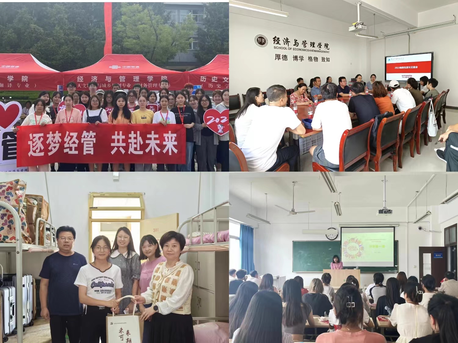 为促进家校沟通,9月7日下午,学院在博文楼B411会议室召开2023级新生家长见面会,经济与管理学院党委书记张建辉、副院长刘家瑛、副书记陈璐、2023级新生辅导员吴思瑾与新生家长代表共同参加了此次见面会。见面会上,刘家瑛副院长向家长们介绍了学院的发展历程、专业设置、师资队伍、教学资源、实习就业等各方面情况。张建辉书记鼓励家长积极与学院沟通联系,形成家校联动的良好局面,帮助新生尽快适应大学生活。9月8日上午,学院党委书记张建辉、院长崔洁,副院长刘家瑛、副院长陈秀端、副书记陈璐、辅导员吴思瑾等一行走访学院新生宿舍,深入了解新生住宿情况,并向少数民族学生发放学院迎新慰问小礼包,鼓励新生积极投入即将展开的大学学习生活,为自身未来奠定良好基础。9月8日下午,学院组织2023级全体新生召开“开学第一课”主题班会,新生辅导员吴思瑾老师主持此次班会活动,希冀全体新生能够在大学四年中珍惜时光,严于律己,勇敢迎接校园新生活中的各项挑战。
