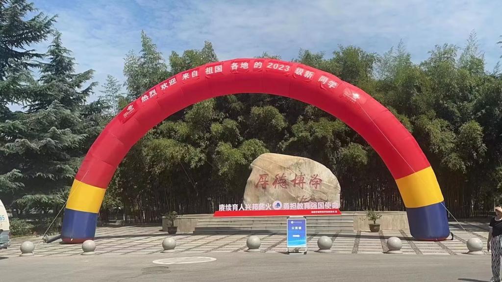物业服务中心对校内景观、草坪、绿植进行修剪,对危树枯枝进行清理,搭建迎新帐篷和彩色迎新门。及时对校园内各类杂物、垃圾进行清理,确保校园环境干净整洁。