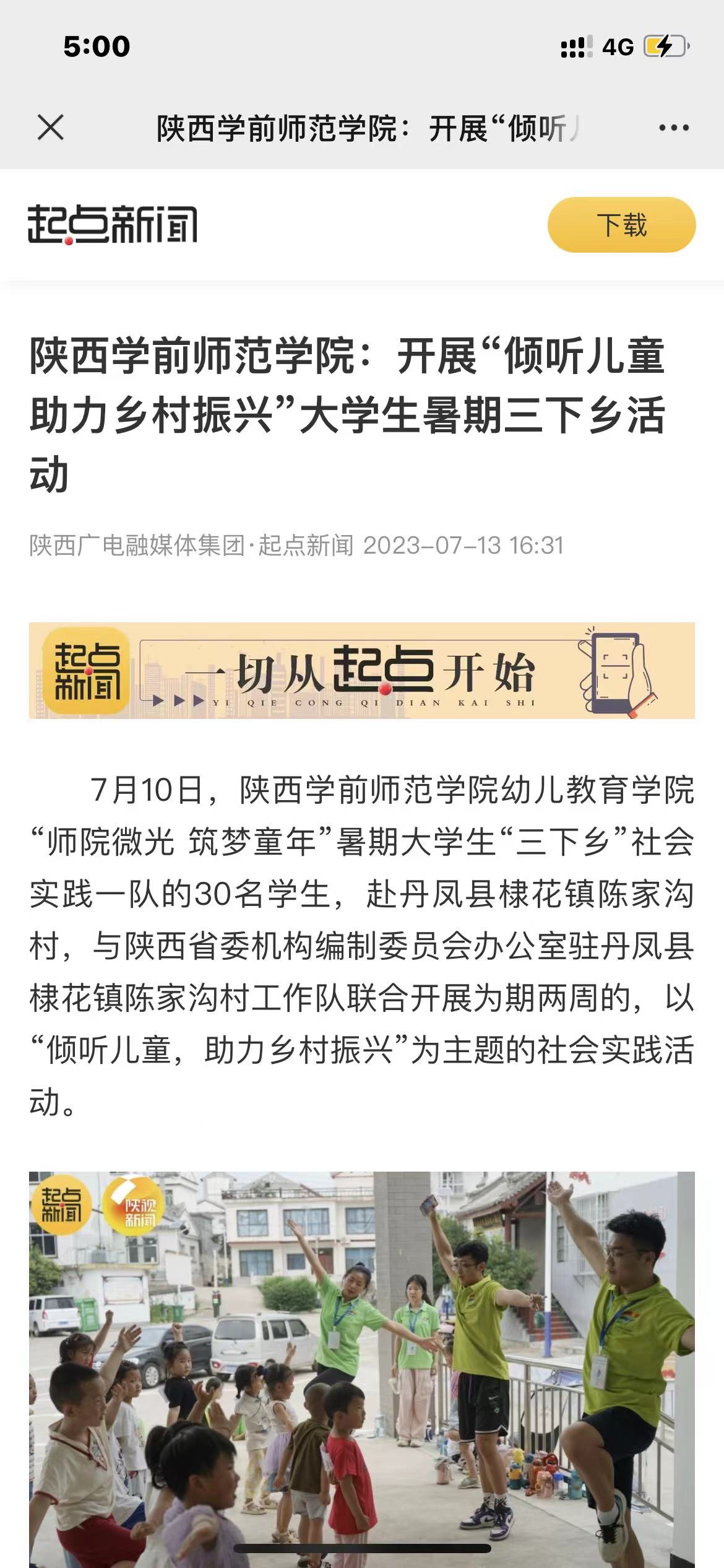 4.7月13日《陕西教育新闻网》 “倾听儿童,助力乡村振兴” 暑期“三下乡”活动在陕西丹凤开展