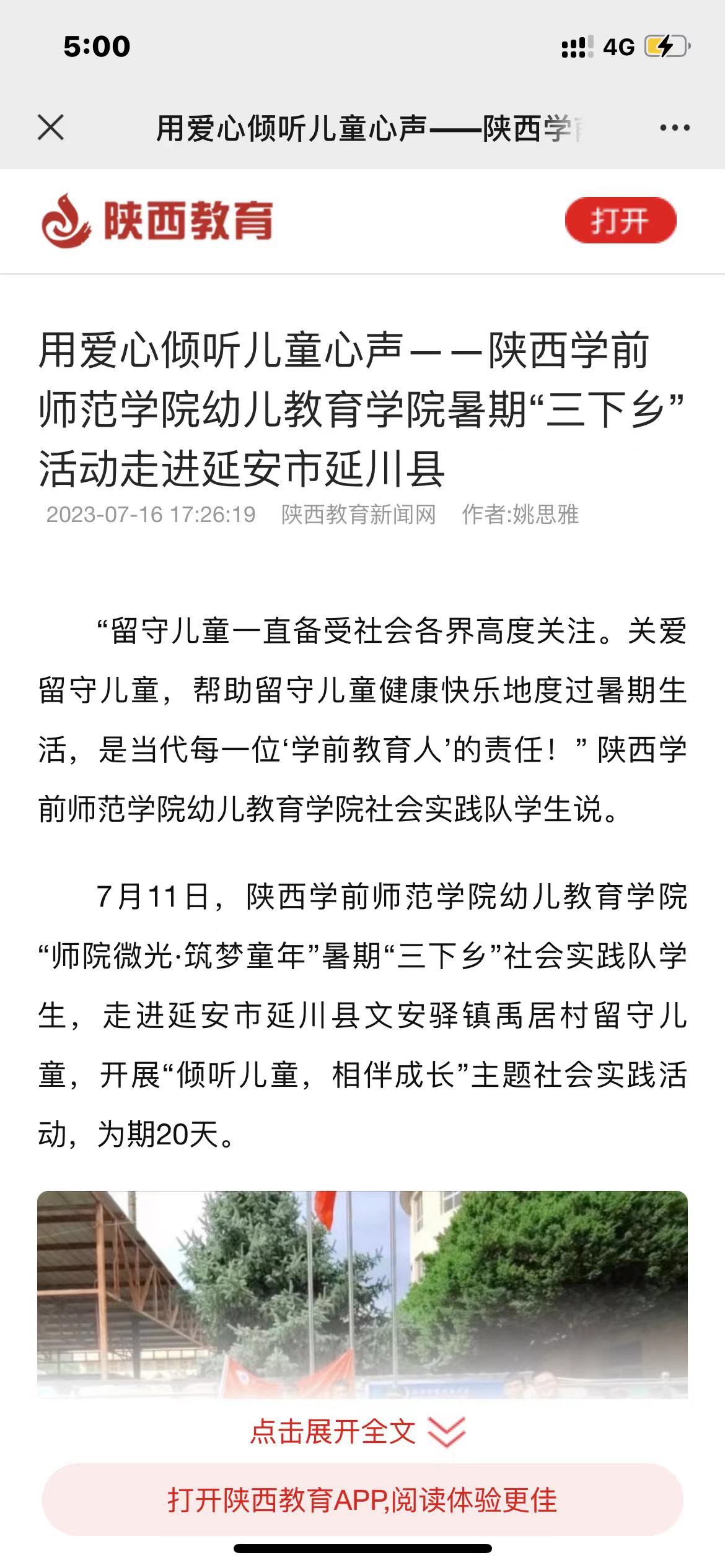 5.7月16日《陕西教育新闻网》用爱心倾听儿童心声——Beat365官方网站幼儿教育学院暑期“三下乡”活动走进延安市延川县