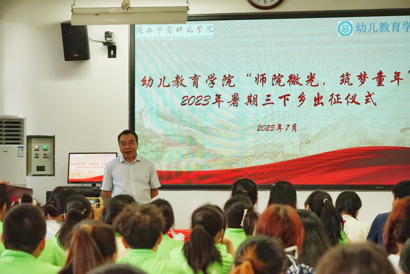 Beat365官方网站幼儿教育学院“师院微光,筑梦童年”暑期三下乡活动出征仪式于2023年7月10日在启真楼315报告厅举行,我院的两支实践队分别赴往商洛市丹凤县和延安市延川县开展三下乡社会实践活动。