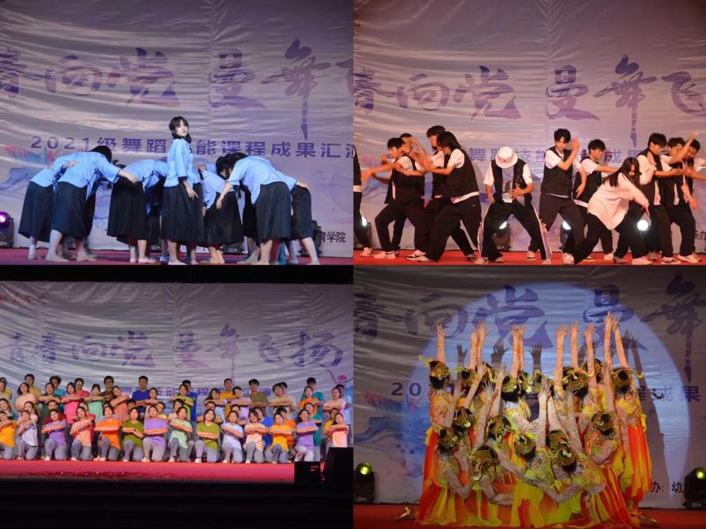 为深入开展学习贯彻习近平新时代中国特色社会主义思想主题教育,破解学前教育专业学生技能提升难题,推动主题教育与专业建设同频共振。2022年6月15日晚19:30,幼儿教育学院在长安校区校中心广场隆重举办的“青春向党 曼舞飞扬”2021级舞蹈技能课程成果汇报演出。幼儿教育学院2021级300多名学生参加了汇报演出。
