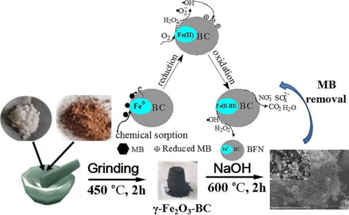 图1 BFN制备及去除亚甲基蓝机理的示意图