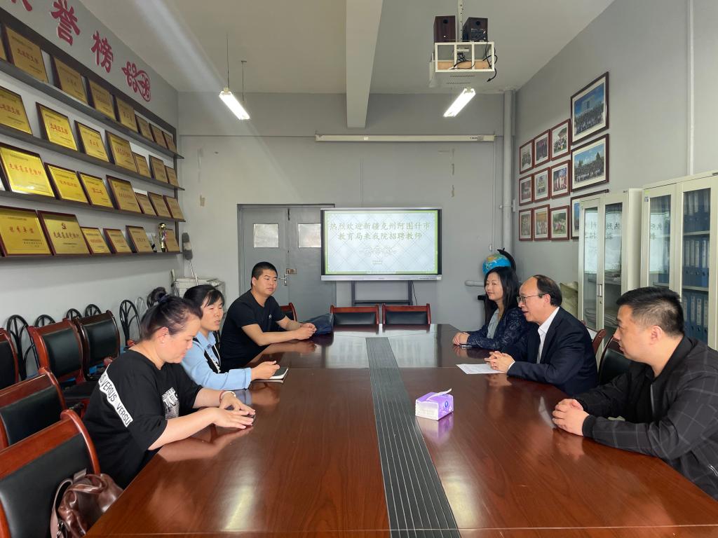 座谈会上,副校长唐宏代表学校对新疆克州阿图什市教育局到访表示欢迎,就学校历史、办学定位、专业布局、校企合作等基本情况进行了介绍。阿图什市教育局陈萍对阿图什市教育现状、人才需求、福利待遇等进行了详细说明。外国语学院书记高海燕介绍了学院整体情况和师资建设、英语专业学生培养等。副校长唐宏希望双方能结合自身实际情况,建立常态化交流机制,实现人才培养与企业需求精准对接,达成有深度、有广度和长期有效的合作。