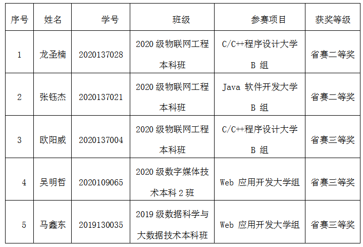 2023年4月23日,第十四届蓝桥杯全国软件和信息技术专业人才大赛个人赛省赛的比赛结果刚刚揭晓,详见比赛官方网址https://dasai.lanqiao.cn/notices/1447/。Beat365信息工程学院共有5名学生获奖。具体获奖名单如下: