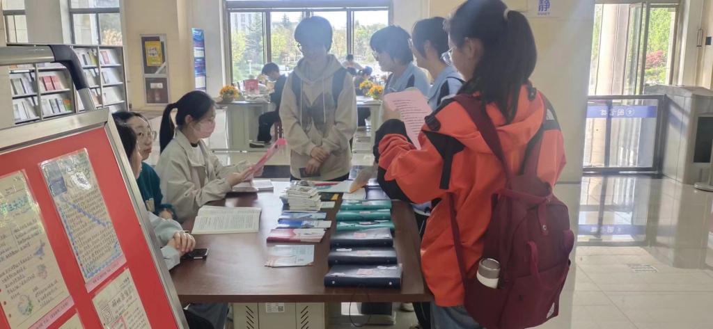 此次系列活动之一是“读书笔记漂流活动读者优秀笔记展”,已于4月3日在图书馆二层大厅顺利开展,活动首日便掀起观看热潮,很多读者翻看了漂流笔记本,同时拍下展板展示的优秀笔记作为学习参考。系列活动之二是“读者有奖知识竞答”,同在图书馆二层大厅开展。至4月10日,竞答活动已有百名读者积极参与,连续答题数量最多的学生读者答对55道题目。活动结束时,图书馆将为连续答对题目最多的前五名学生颁发荣誉证书和奖品,以资鼓励。