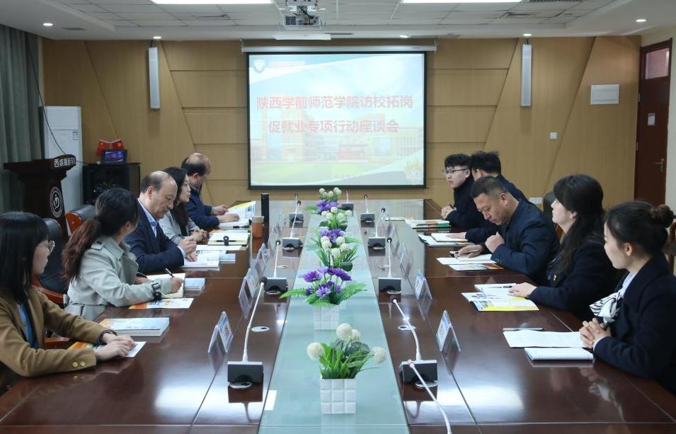 为贯彻落实教育部关于高校毕业生就业工作决策部署,深入推进“访企拓岗促就业”专项行动,深化校企合作,进一步推动学院毕业生高质量就业,3月30日上午,校党委副书记、纪委书记王凯率领文学院党委书记杨阳、文学院院长牛文明、文学院党委副书记庞曦、毕业班辅导员王彩旭一行赴西咸高新学校开展走访调研,并与西咸高新学校校长张同光、副校长龚宁、校长助理徐波等进行了座谈交流。座谈会由文学院党委书记杨阳主持。