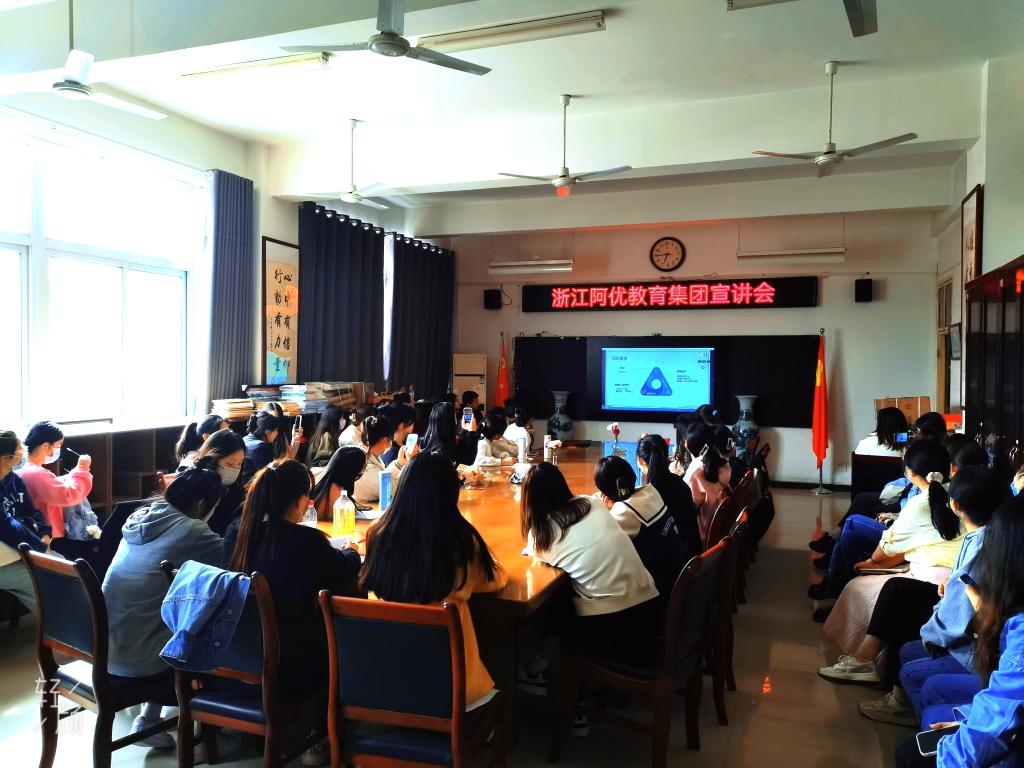宣讲会上,阿优教育集团行政主管为到场的应届毕业生详细介绍了义乌市人才引进政策、公司基本情况、招聘岗位、园所分布、薪酬待遇等同学们关心的内容,对部分意向同学的职业发展和岗位选择提供了针对性建议,并就同学们提出的相关问题进行逐一解答。宣讲结束后,部分同学进行网上登记,为后期到企业进行面试、签约等做好准备。