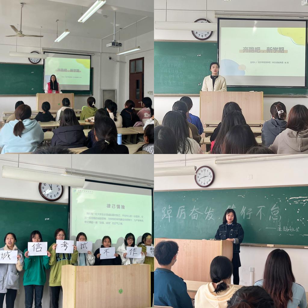 2021级、2022级辅导员肖欢老师以“奔跑吧,新学期”为主线,从养成良好习惯,做好时间管理、克服自身惰性等三个方面教育引导学生结合实际情况,树立春季学期学习新目标,努力提升自身的专业知识水平与综合素养,争做有信念、有梦想、有奉献精神的新时代好青年。