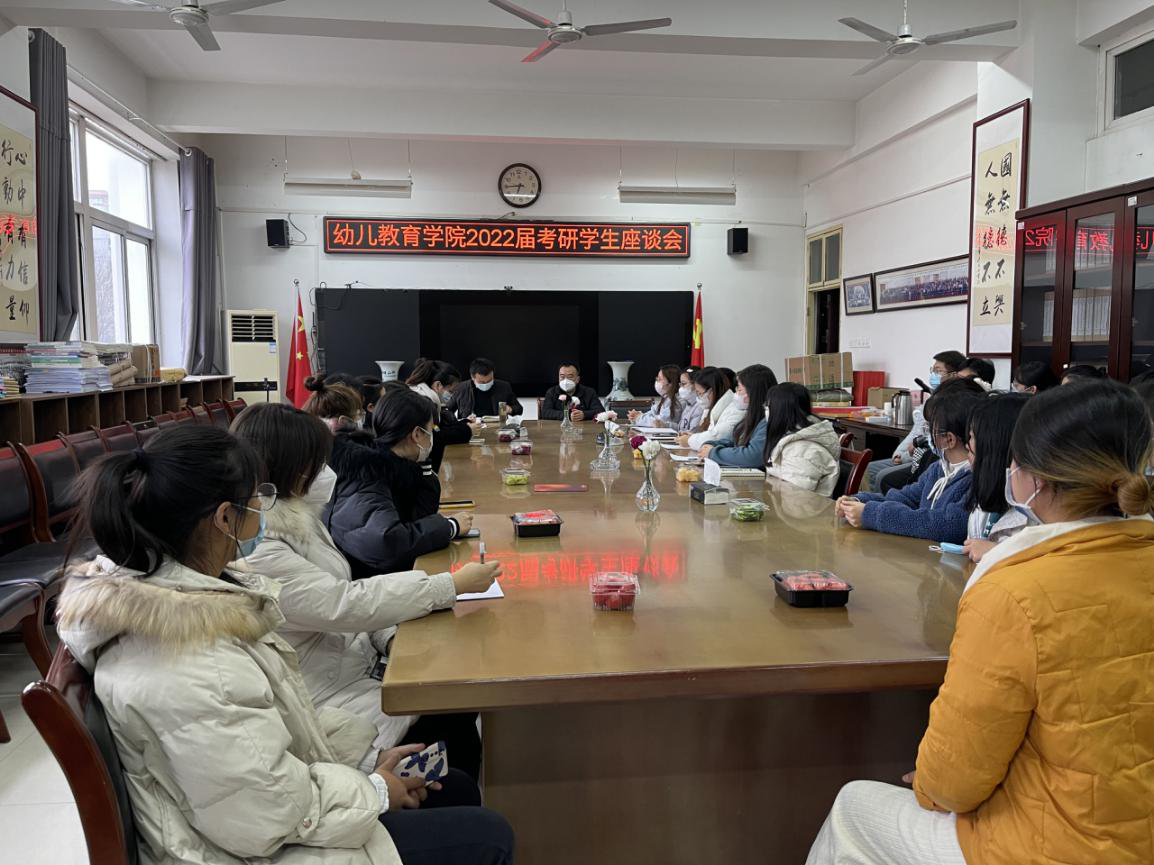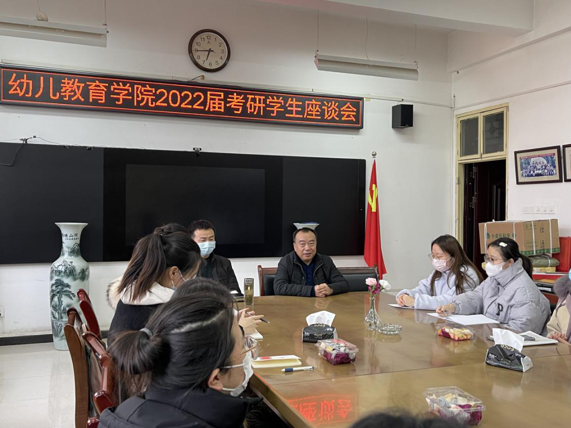 随着2023届毕业生考研日期临近,为进一步指导我院2023届考研学生调整状态,积极应考,幼儿教育学院于2022年12月13日,在启真楼307会议室召开2023届毕业生研究生考试座谈会。学院领导何善平、王继康、苏群,毕业生辅导员,以及2023届本科备战考研的学生代表参加了此次座谈会。会议由党总支副书记苏群主持。