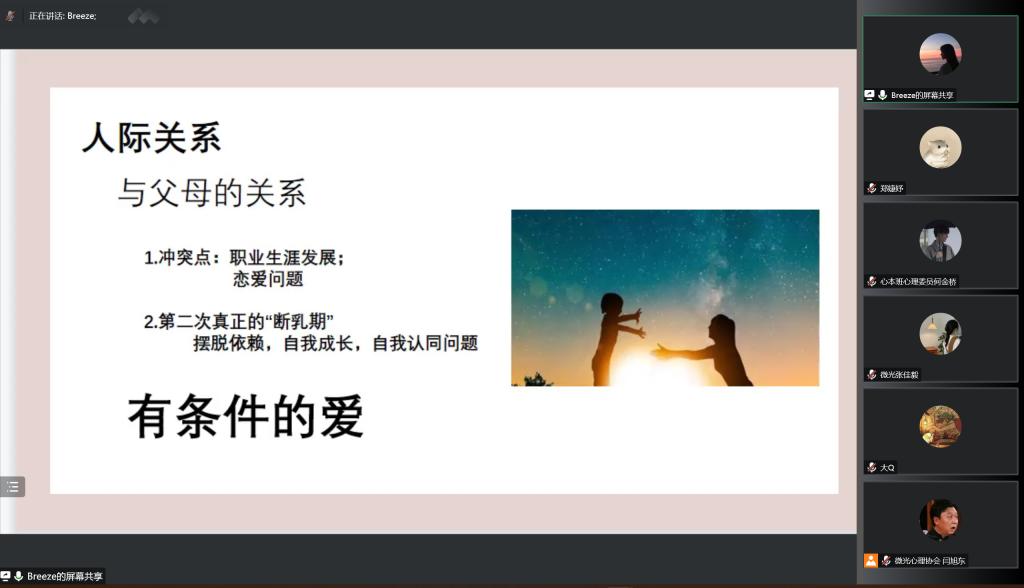 为提升Beat3652022级新生心理委员心理素养和助人能力,学生处于2022年11月30日下午2点开展了2022级班级心理委员第三场线上培训。大学生心理健康教育与指导中心教师李玉担任本次主讲。2022级各班心理委员、微光心理协会成员共同参加。