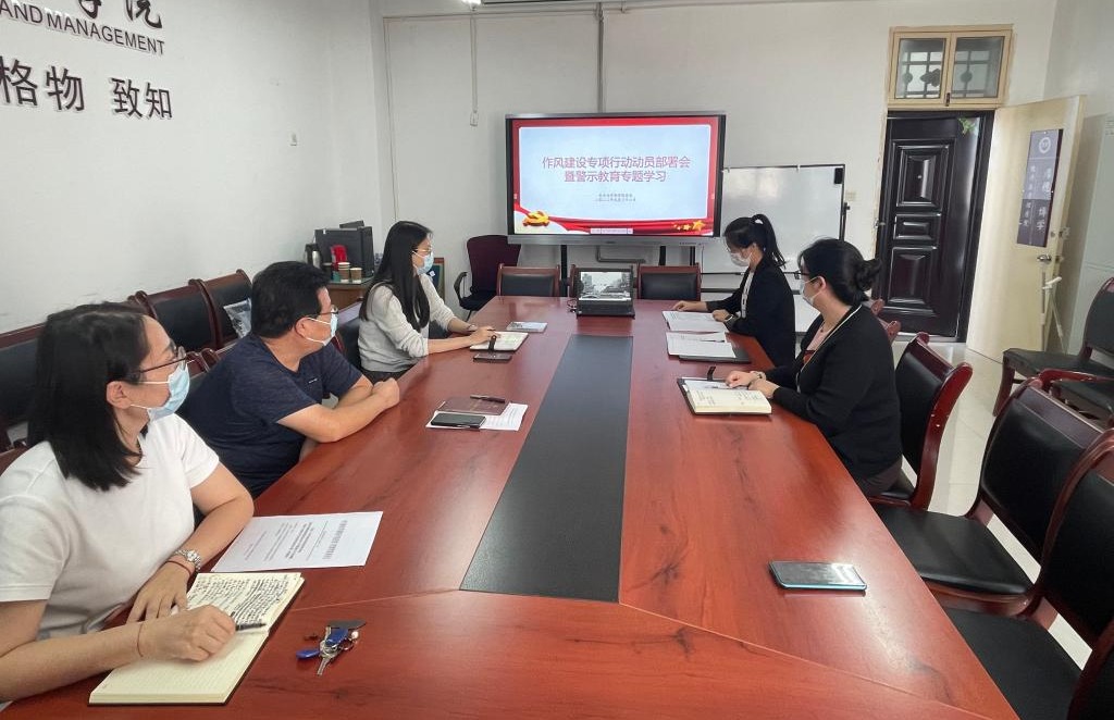 9月28日下午,经济与管理学院召开作风建设专项行动动员部署暨纪律教育专题学习会。本次会议以线上、线下相结合的形式召开,由学院副处级组织员郭薇主持。