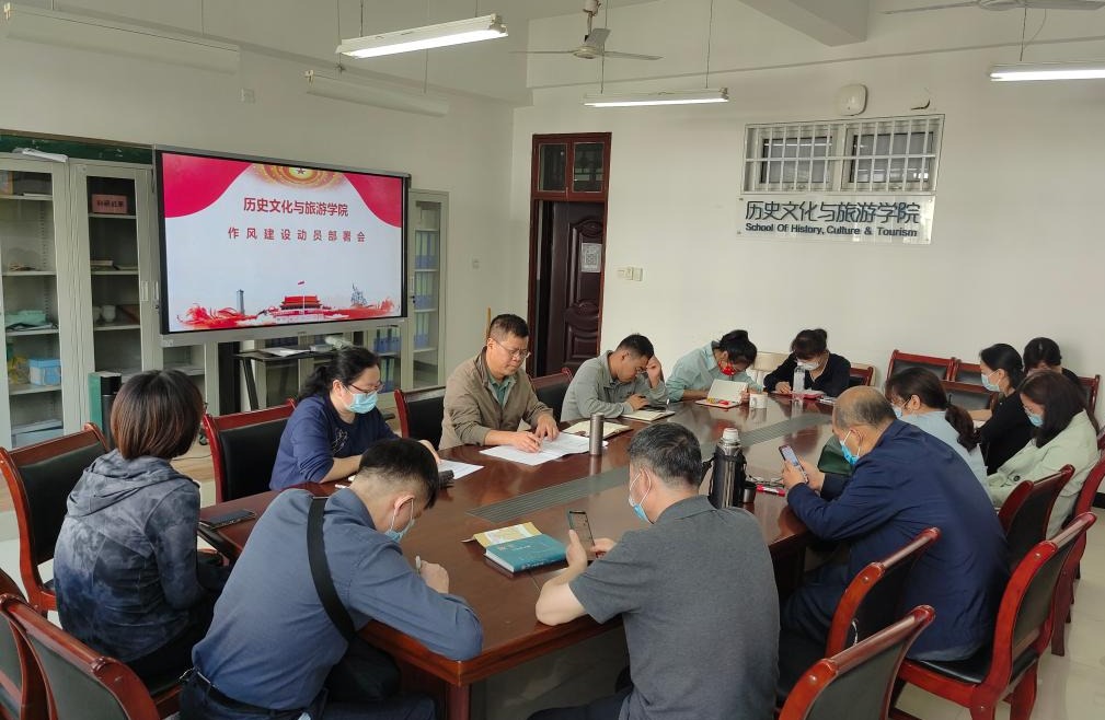 9月28日下午,历史文化与旅游学院在学院会议室召开了作风建设专项行动动员部署会。学院党政班子以及全体教职工参加会议。会议由学院党委副书记景艳主持。