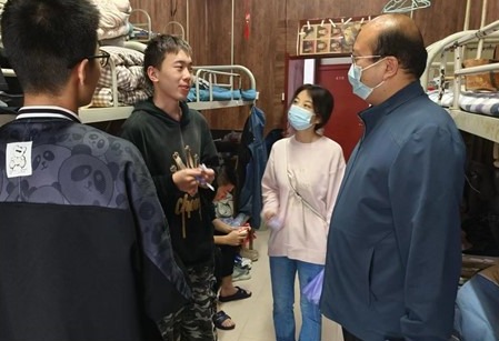 为确保国庆节期间校园安全稳定有序,掌握学生思想动态,加强学生的健康安全教育,文学院党委书记杨阳、院长牛文明、党委副书记庞曦及辅导员在国庆期间深入学生宿舍,走访慰问假期留校学生并送去节日祝福。