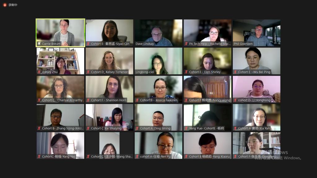 该项目培训由中国教育国际交流研修学院主办,由陕西省国际交流与留学服务中心承办,授课师资团队经由美国英语学会推荐,由北美专业从事教师培训,具有扎实的学术背景和培训经验的资深专家组成。培训内容包括课程设置及制度与教学内容衔接、教学大纲编写、跨文化交际与英语课堂教学、专业英语课堂教学实践模式、线上微教学与科技辅助教学、学术研究与论文写作六个部分。本次培训通过专家讲座、小组活动(每组12-15人)、观摩研讨等形式开展并进行课堂教学实践,以全英文在线(zoom直播)方式进行。此次培训围绕教育教学这一中心,提升了教师英语专业能力和核心素养,帮助教师了解了前沿英语教学理论,提高教师的跨文化交际能力、双语教学能力和科研能力。