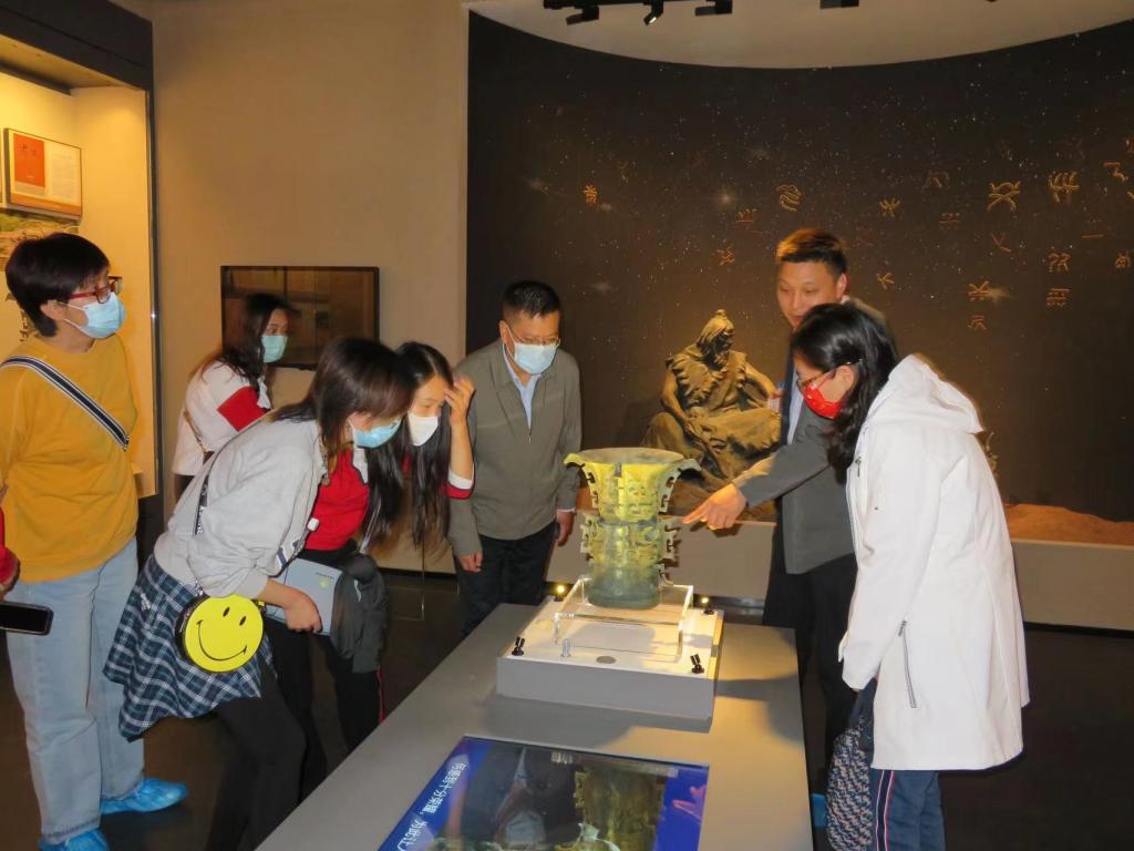 党员教师在西安国家版本馆的安排下,分批进入了具有汉唐风格的主体馆参观。馆内结合西部特色设有多个主题展览,存放了古今中外载有中华文明印记的大量中华版本资源,被称为“中华文明种子基因库”。老师们仔细观摩了代表中华文明印记的各种古籍、青铜器、实物、珍贵图片资料以及手稿等版本资源。通过专业讲解员的详细讲解,老师们由衷地感叹中华文明的博大精深,深切感受了优秀传统文化的深厚底蕴,极大地激发了大家作为高校专业教师传承中华历史文化,坚定文化自信,弘扬爱国奋斗精神的历史使命感,增强了作为党员教师严守纪律规矩,发扬党的优良传统作风和爱岗敬业精神的时代责任感。