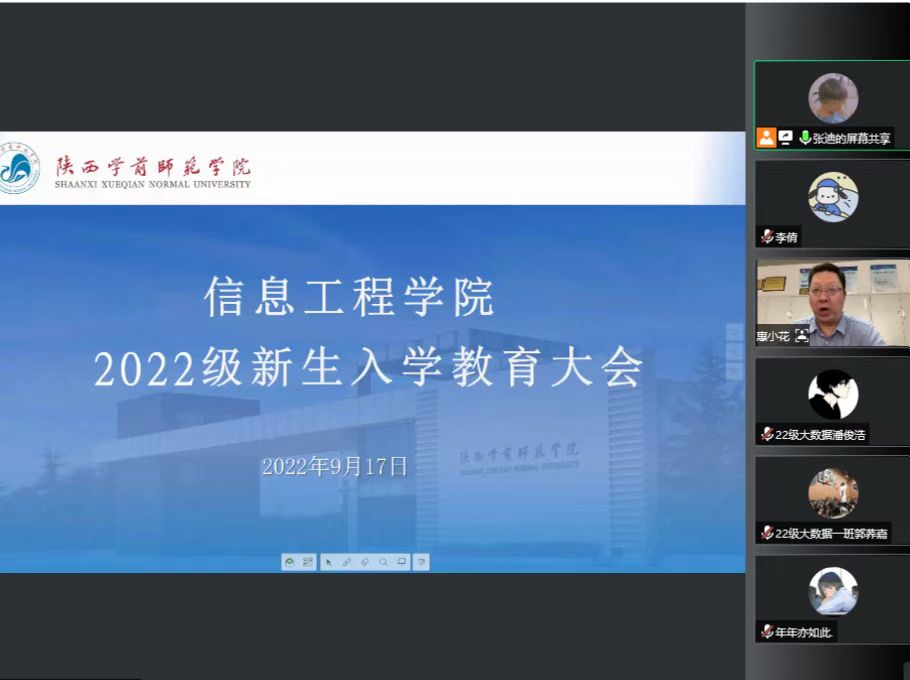 2022年9月17日上午8:30,信息工程学院在积学楼A204会议室以“线下+线上”直播的方式举行2022级新生入学教育大会。学院领导班子全体成员、全体辅导员、教师代表、2021级学生代表、2022级全体新生及部分新生家长代表参会。本次会议由副院长邓志龙主持。