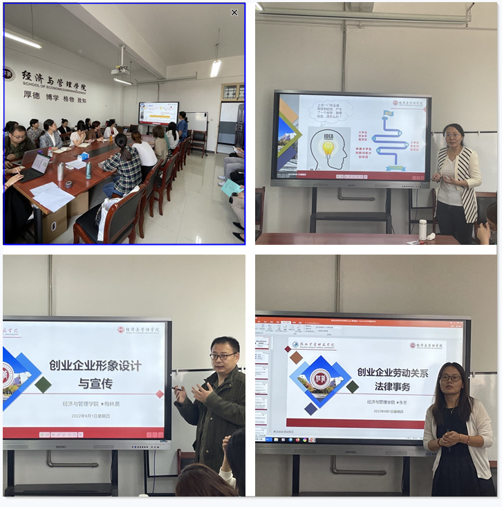 授课教师们按照课程教学大纲的要求,广泛搜集素材、精心备课。9月1日在经济与管理学院会议室开展创新创业教育课程的集体备课与教学研讨,每位授课教师进行了25分钟的课程分享,我院多名督导专家进行了细致的点评,对创新创业课程的教学设计进行研讨。之后老师们根据专家的建议继续完善,反复打磨,为2022-2023学年第一学期承担的创新创业课程夯实基础。